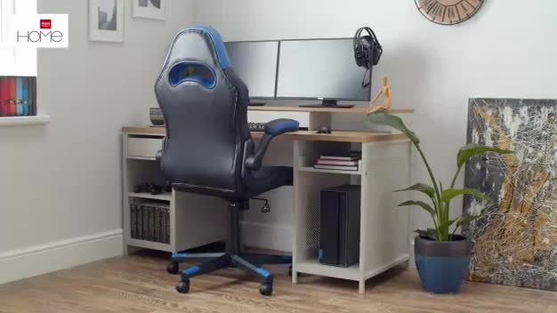 Buy Virtuoso Horizon Gaming Desk Blue And White Desks Argos Gaming Desk Gaming Desk White Gaming Desk Black